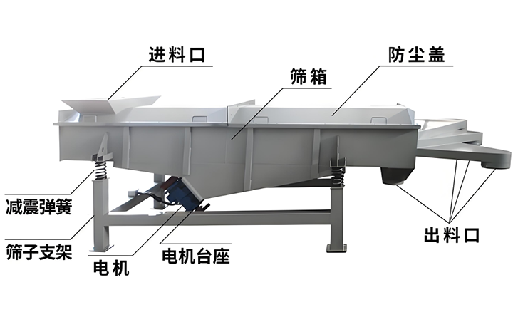 亮粉分级豆奶视频成年APP下载主要由筛箱、振动电机、筛网、减震装置、进料口、出料口及机架组成。筛箱为倾斜矩形,内部分层装 2-200 目筛网,实现多粒度分级;振动电机单侧或对称装于筛箱两侧,通过定向激振力驱动筛箱直线往复运动,让亮粉在筛面分散、透筛。减震装置用弹簧组件连接筛箱与机架,缓冲振动、降噪音;进料口设导流板防亮粉堆积,各层筛网下有独立出料口,排出不同粒度亮粉成品。